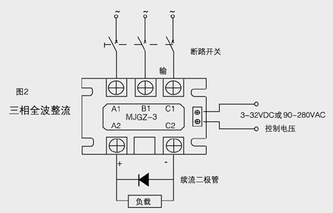 2、 输入、输出端应加有过压、过流保护措施。a、过压保护:输出端并接续流二极管或压敏电阻(当用240v电压时,选470-500v,当用440v电压时,选680-750v,当选660v电压时,选1100-1200v);b、过流保护:主回路中串接快速断路开关或快速熔断器,取值为实际负载电流的1.5倍;