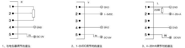 5、输入控制信号: 1-5VDC或4-20mA或10k电位器。