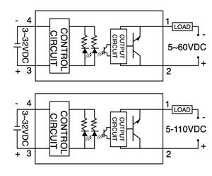 负载电压 5-60VDC、5-110VDC、5-250VDC