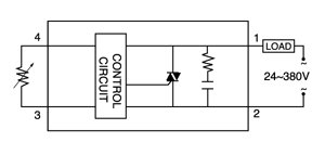 5、使用在感性负载时,高瞬态电压以及浪涌电流施加与输出端,因此可能导致固态调压器误导通或损坏,通常需要在输出端接入具有特定钳位电压的电压控制器件,如双向稳压二极管或压敏电阻(MOV)。压敏电阻推荐取额定电压的1.6-1.9倍。